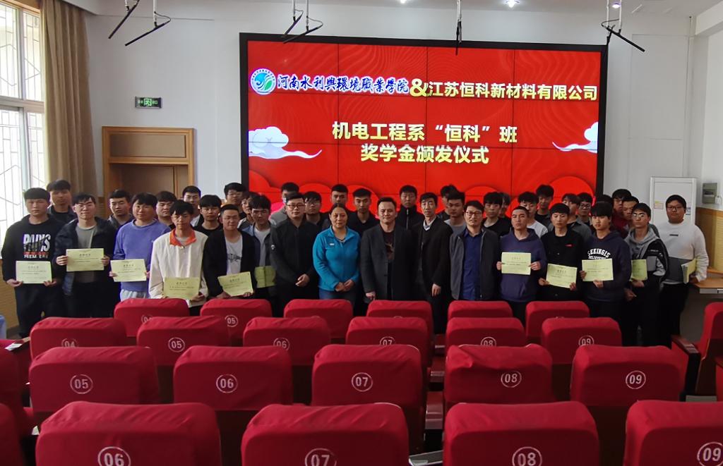 3月24日,机电工程系举行“恒科”订单班奖学金颁奖仪式,江苏恒科新材料有限公司人力资源部经理周光明,系党总支书记王建军、主任王利卿及订单班45名学生颁奖仪式。
