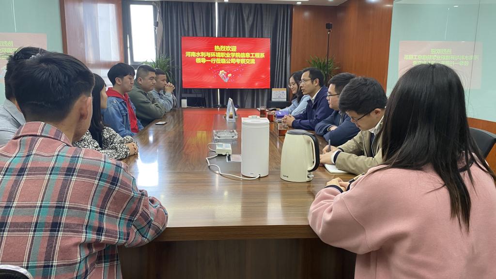 4月8日,为探索校企合作新路径,调研专业岗位人才需求,促进信息工程系现代学徒制双元育人模式进一步开展,系主任张军锋一行前往郑州京慧越科技有限公司进行合作交流,郑州京慧越科技有限公司副总经理张雷等热情接待。