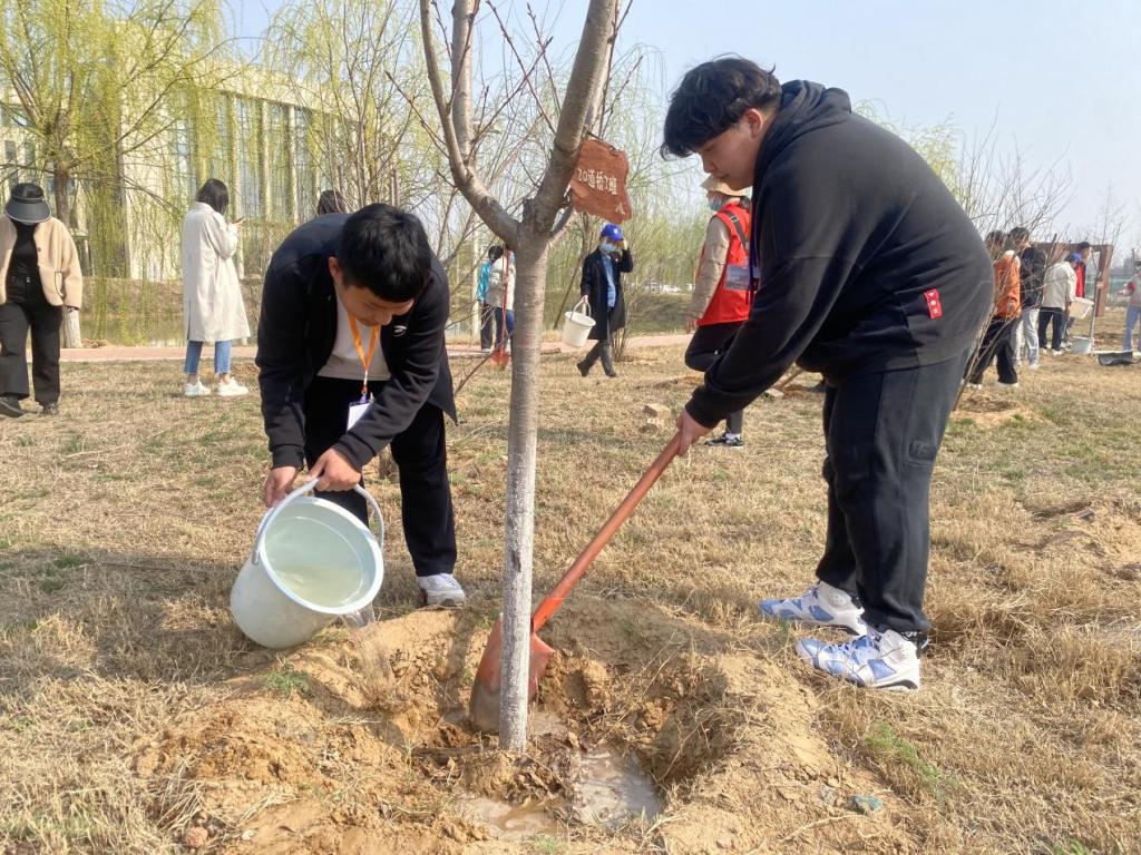 活动中,大家配合默契、干劲十足,有的挥锹铲土,有的提桶浇水,现场一派繁忙景象。经过近两小时的辛勤劳动,樱花园焕然一新,为春日的校园增添了蓬勃生机。