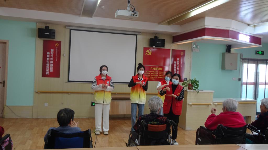 志愿者们到达敬老院后,以小组为单位帮助老人们打扫卫生、整理床铺和日常生活用品,一对一讲解智能手机的使用方法,一起玩游戏、唠家常、聊趣事,认真倾听他们讲述个人经历,并共唱《没有共产党就没有新中国》等歌曲。