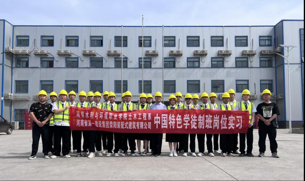 5月16日,土木工程系中国特色学徒制班学生在专业老师的带领下,走进校企合作企业河南省第一建设集团荥阳装配式建筑有限公司进行岗位实习。