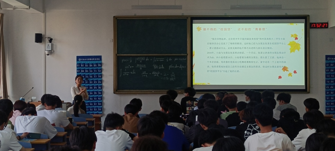 各班辅导员结合实际案例,讲解了当前电信诈骗的形式和表现特点,提醒学生要提高自身防范意识,树立理性消费观念,养成良好的上网习惯,自觉远离网络不良借贷。