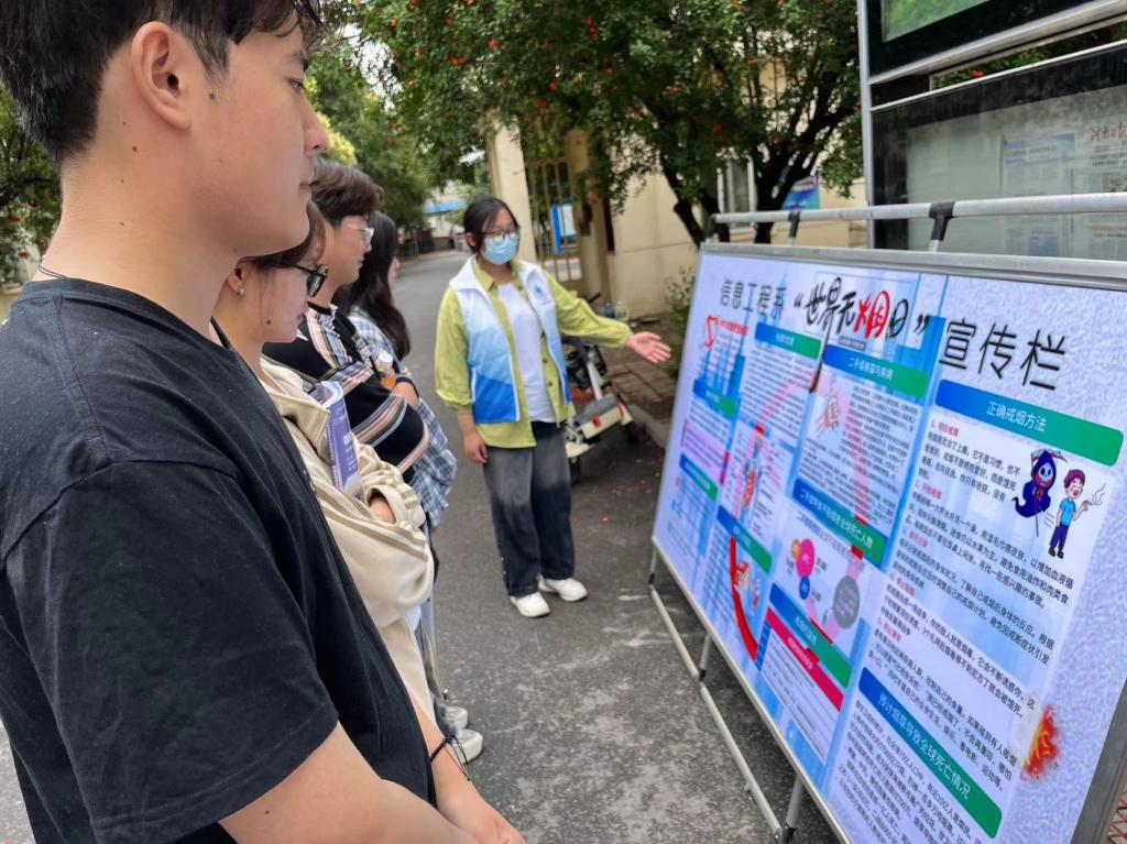 今年5月31日是第36个世界无烟日。为创建无烟校园,营造健康环境,5月30日,信息工程系开展“拒绝烟草,共建文明校园”宣传教育活动。