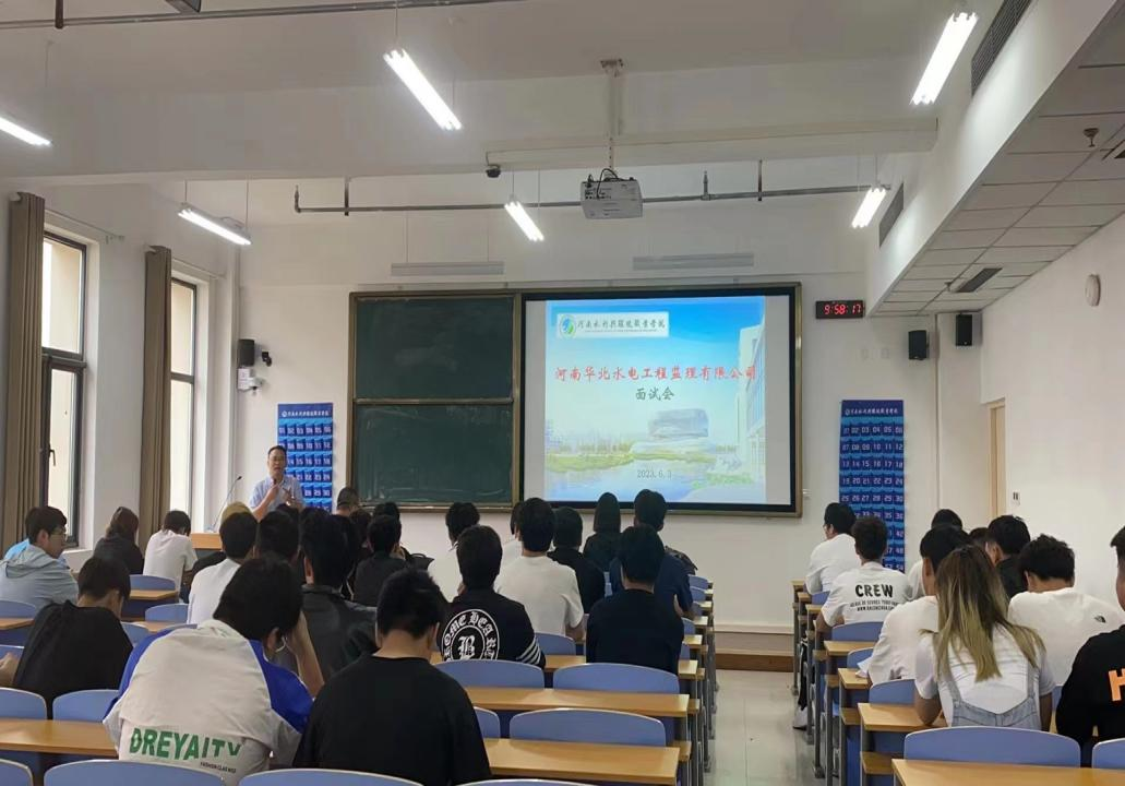 为促进学生实习就业工作,6月3日,水利工程系举办河南华北水电工程监理有限公司专场面试会,2021级建设工程监理、建筑工程技术等专业40余名同学参加。