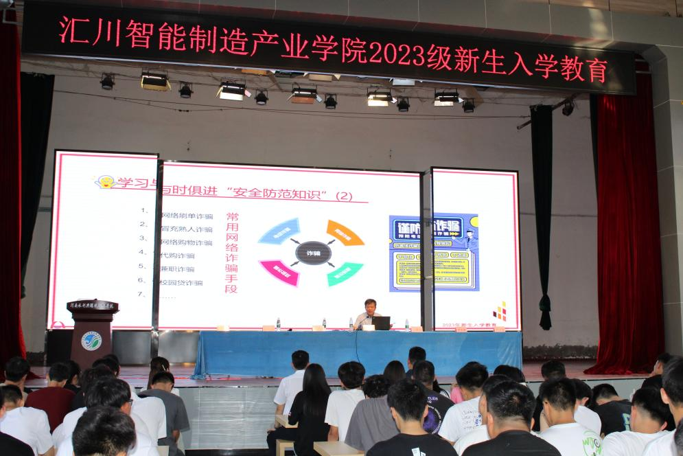 9月14日,汇川智能制造产业学院举行2023级新生入学教育大会。学院党总支书记武凤翔教授、院长王瑷珲教授、副院长王展慧,理事闫荣友、马蕾蕾出席,优秀教师代表胡小树、崔雯雯和全体教职工以及2023级新生参加。