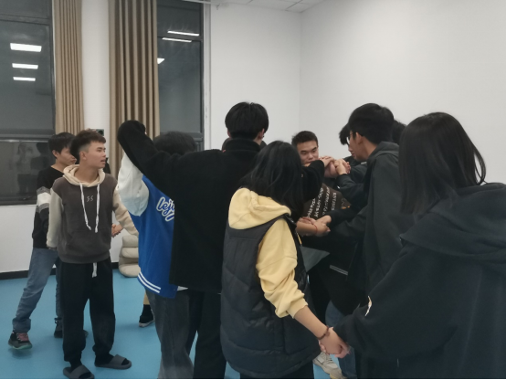 “巧解千千结”环节,同学们手拉手一起从相互交错的纠结中还原成围绕在一起的大圈,彼此相握,传递温暖。大家感受到在集体中每个人都是十分重要的存在,在遇到困难时,我们可能有时迁就别人的需要,有时候也需要别人来迁就我们的需要,总之需要大家通力合作,团结一致。