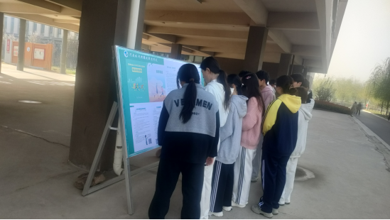 同学们驻足观看宣传展板