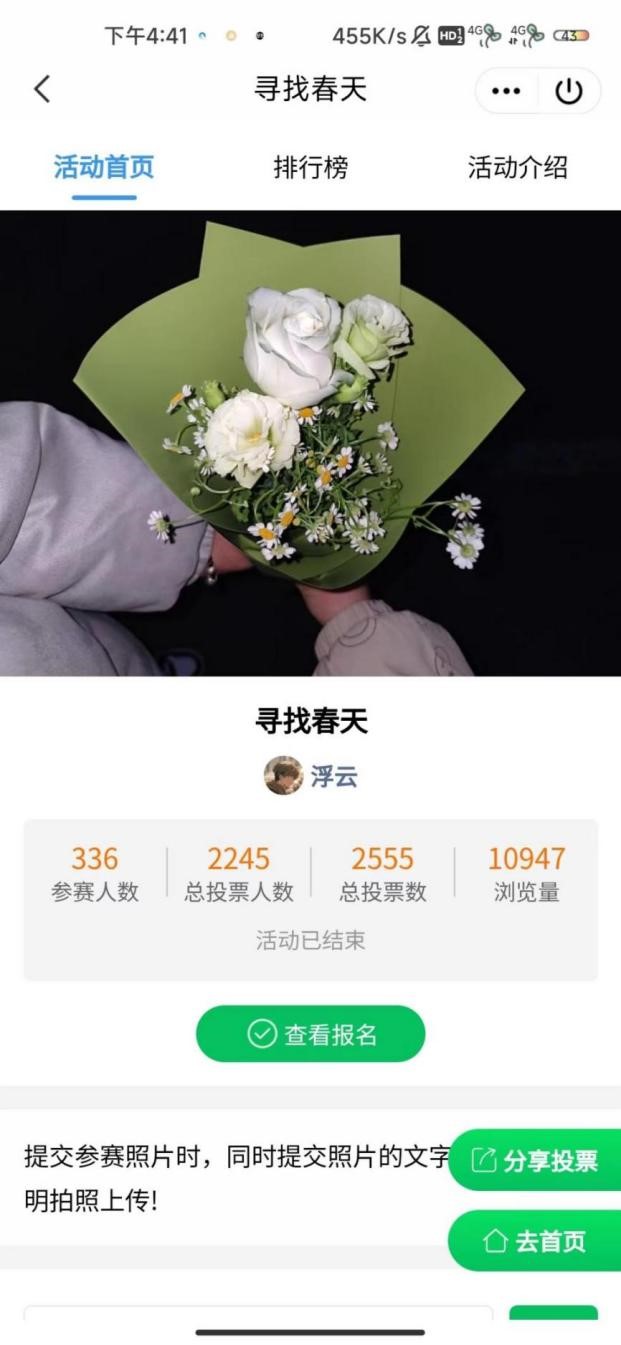 活动期间,同学们用镜头记录下枝头吐绿的嫩芽、田野间绽放的花朵,并在微信小程序中上传分享自己眼中独一无二的春日美景。活动共收到摄影作品336件,通过公开投票,评选出一等奖3件,二等奖4件。