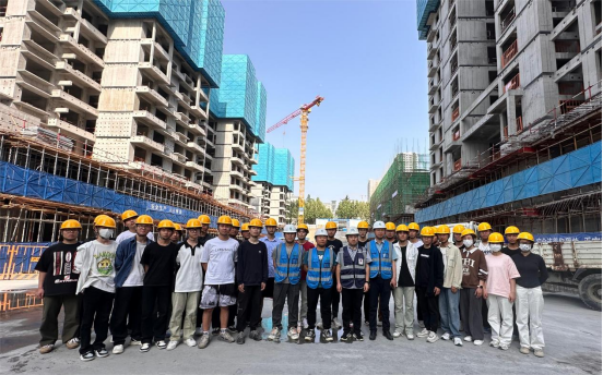在中国中铁七局旮旯王棚改项目部,项目部负责人带领学生们参观了施工现场,详细介绍了项目概况、施工进度和安全生产情况。同学们近距离接触了大型工程项目现场运作,深入了解了大型工程项目的施工组织、进度管理以及质量控制等关键环节。