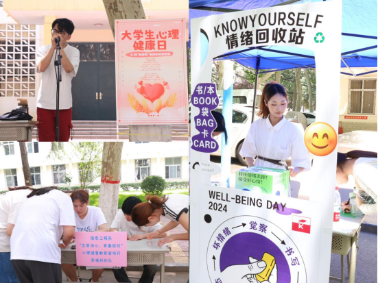 心理健康教育宣传月主要包括“绘制帆布包”“情绪回收站”“许愿漂流瓶”“气球遇上花”“幸福刮刮乐”“曼陀罗彩绘”“音为有你,乐动心灵”“心影共鸣”“团体沙盘”“心理健康知识讲座”“心理趣味运动会”等内容。在“绘制帆布包”活动中,同学们手执画笔,以白色帆布包为画板绘制创意图案,为每个帆布包赋予独一无二的意义,促使学生积极体验;在“情绪回收站”活动中,同学们将最近的困惑、烦恼、坏情绪写在情绪卡上,将卡片团成纸团投到“情绪垃圾桶”内,体验丢弃烦恼、收获快乐的过程;在“许愿漂流瓶”活动中,同学们领取情绪卡片,将自己心中的愿望写下来并放置漂流瓶里,许下心愿,点燃希望;在“气球遇上花”活动中,同学们通过现场创作专属气球花束,体会花开指尖的幸福;在“幸福刮刮乐”活动中,同学们领取刮刮乐,通过每天刮开一个任务并在小程序打卡的形式,记录丰富有趣的生活;在“曼陀罗彩绘”活动中,同学们通过绘画的形式,整合内心的矛盾,获得内在的和谐与稳定;在“音为有你,乐动心灵”活动中,通过校园歌手现场演唱的形式,帮助学生进入放松状态,促进情感的表达和释放;在“心影共鸣”活动中,同学们通过观看电影《心灵奇旅》,引发对现实生活、生死和梦想的深度思考;在“团体沙盘”活动中,通过构建沙盘场景,表达内心世界,学习合作、协调和解决冲突的方法;在“心理健康知识讲座”中,通过图卡的形式激发学生的自由联想,增强自我认知,更深入地了解自己的内在潜力和个性特点;在“心理趣味运动会”活动中,学生通过竞技比拼,在团队协作中调节情绪、缓解压力,培育积极的心态和坚强的意志品质。