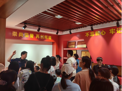 参观中,消防站工作人员讲解了常见消防工具的作用和操作方法,现场展示了救援爬楼技能,并带领大家走进战斗班、荣誉室,观看消防逃生及消防安全知识视频。消防员们的良好精神面貌、熟练高超的救援本领和感动人心的救援故事,引发了大家的浓厚兴趣,赢得了阵阵喝彩。