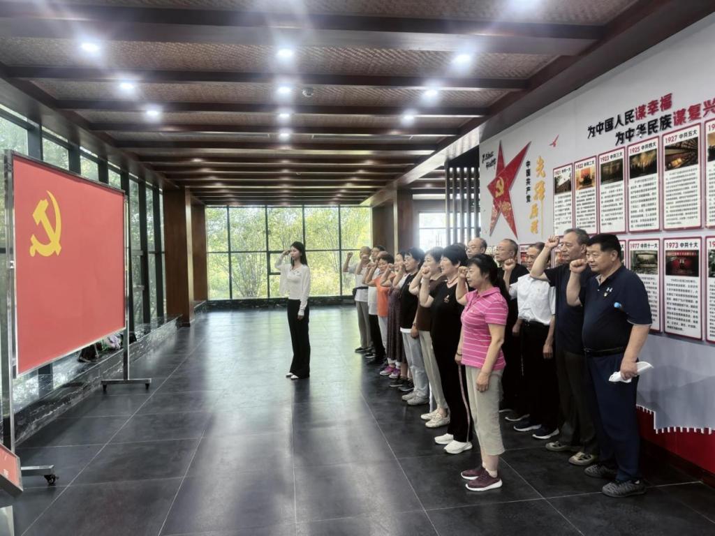 参观结束后,全体党员同志在鲜红的党旗前,举起右拳,重温了入党誓词。
