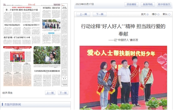 《河南工人日报》以“行动诠释好人精神 担当践行爱的奉献”为题刊登唐志发好人事迹