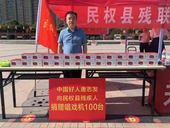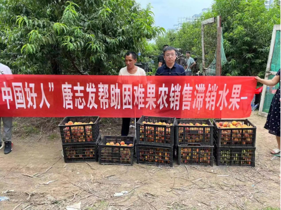 俗话说,吃水不忘挖井人。创业成功后的唐志发,一直心系家乡群众、关心家乡发展。他回到家乡商丘市民权县,开始支持参与扶危济困、捐资助学等公益事业。他先后发起组建了民权县帮扶好人协会、民权县孝善敬老志愿服务队、民权县好人事迹宣讲团等多个志愿服务团队,和众多志愿者携手培育了“爱心义剪”“爱心义诊”“好人事迹宣讲”“爱心助农”“困难帮扶”等优秀服务项目,并积极参与扶助创业、疫情防控、防汛抗灾等各种社会公益活动。多年的公益心、公益行,使他成为了家乡社会公益事业的代言人。比如,今年春季,在了解到家乡农产品滞销情况后,唐志发数次组织助农帮扶志愿服务队,主动联系家乡王桥镇大凡村、绿洲街道办事处赵庄新村、野岗镇顿庄村等菜农果农,帮助销售滞销蔬菜瓜果10万余斤,为他们挽回经济损失10万余元,并自费采购生活困难残疾果农1万余斤黄桃,全部免费送给群众。再如,在贫困助学中,他作为民权县“新时代好少年”爱心大使,按照每人每年2000元标准,坚持长期资助生活困难“新时代好少年”,资助金额累计20余万元。