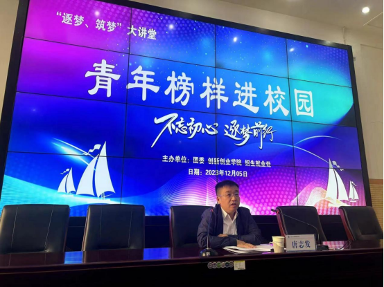 2023年12月5日,唐志发回到学校参加“青年榜样进校园”活动,与师生分享自己的创业路