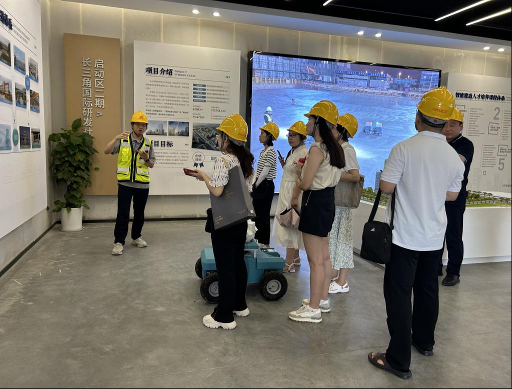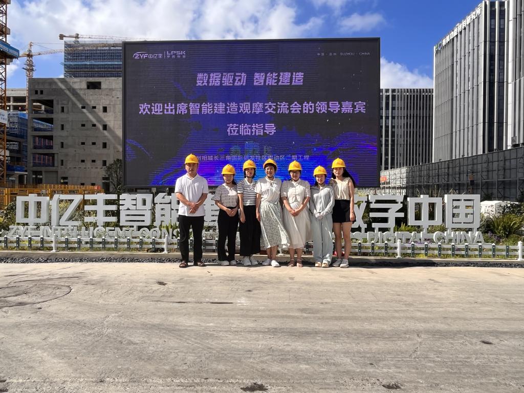 座谈会上,双方围绕智能建造技术专业人才培养思路、师资培养、教学资源共建共享等方面进行了深入交流。在企业负责人的带领下,教师们实地参观了长三角国际研发社区智能建造示范项目、相城智能建造装备研发与服务中心、中亿丰集团企业展厅、中亿丰数字科技中心,了解了智能建造项目中BIM技术、机器人、智能测绘、智慧工地的实践应用情况及发展前景。