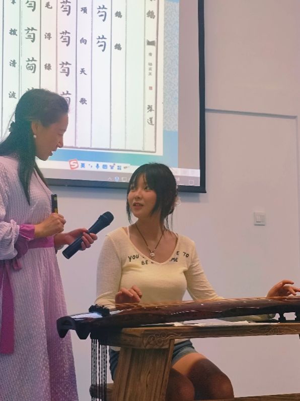 活动伊始,古琴指导教师张欢欢以《好玩的古琴》为题展开分享。他从《沧海一声笑》等经典曲目的意境切入,阐释古琴“清微淡远”的审美如何与心理学中的正念、情绪调节技术相通:“琴音能引导听者回归当下,疏解焦虑,这正是中国传统‘乐教’的现代心理价值。”在实践环节,张欢欢带领师生通过“情景想象”“与音律同步”等互动,学习借助古琴音乐释放情绪的技巧。参与者在老师的指导下尝试基础指法演奏,体验“手应于心”的专注状态。学生小张表示:“指尖触碰琴弦的震动感让人瞬间平静,仿佛嘈杂思绪被一点点抚平。”